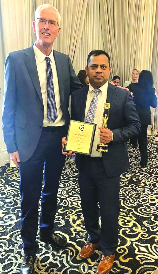 আমরা ইতিমধ্যে জানতে পারি দুলাল ভৌমিক Century 21 Heritage Group থেকে সেঞ্চুরিয়ান ২১ এ্যাওয়ার্ড ৭৪৫ জন বেষ্ট রিয়েলটরকে পিছনে ফেলে সন্মানের সাথে পঞ্চম স্থান অধিকার করেন। এব্যাপারে তাকে বিষয়টি জানতে চাইলে, তিনি আনন্দচিত্তে আমাদের জানান- এটা তার জীবনের স্রেষ্ঠ অর্জনগুলির মধ্যে একটি বিশেষ অর্জন। এই গ্রুপ থেকে এধরনের একটি এ্যাওয়ার্ড অর্জন ভাগ্যের ব্যাপার। সবার কপালে জোটে না।