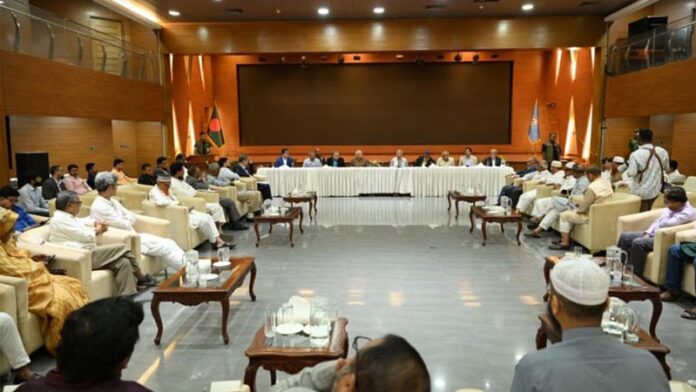 অনলাইন ডেস্ক : রাজনৈতিক দলগুলোকে নিয়ে জরুরি বৈঠক বসেছে জাতীয় ঐকমত্য কমিশন। বুধবার (১৫ অক্টোবর) সন্ধ্যা ৬টায় রাজধানীর বেইলি রোডের ফরেন সার্ভিস একাডেমিতে এ বৈঠক শুরু হয়। এতে যোগ দিয়েছেন ঐকমত্য কমিশনের সভাপতি প্রধান উপদেষ্টা ড. মুহাম্মদ ইউনূস।