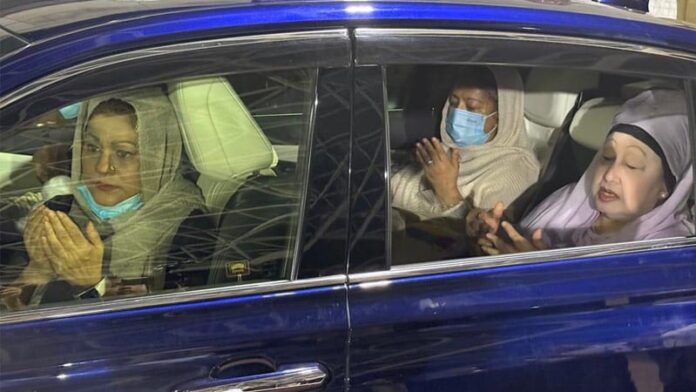 এ সময় গাড়িতে খালেদা জিয়ার সঙ্গে তাঁর দুই ভাই মরহুম সাঈদ এস্কান্দারের স্ত্রী নাসরিন আহমেদ ও শামীম এস্কান্দারের স্ত্রী কানিজ ফাতেমা ছিলেন।