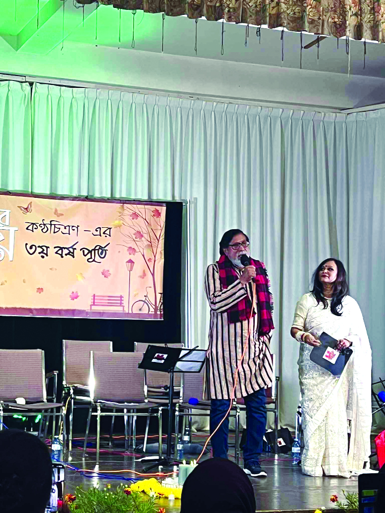 বর্তমান সময়ে; অর্থাৎ, ২০২৪ সালের আগস্টের পরে বাংলাদেশের মানুষের, সেটা দেশেই হোক কিংবা প্রবাসে, বিশেষ করে সাংস্কৃতিক আয়োজনে দুটি বিষয় স্পষ্টতই প্রণিধানযোগ্য। মুক্তিযুদ্ধের মূল্যবোধ ও অসা¤প্রদায়িক বাংলাদেশের পক্ষের দর্শনকে নিহিতবোধ রেখে অথবা এর বিপরীতে। কণ্ঠচিত্রণের পরিবেশনা প্রমাণ করেছেন কবিতা আবৃত্তি ও সাংস্কৃতিক চর্চার দর্শনে তাদের নিহিতার্থ কী! দর্শকশ্রোতারাও বিপুল করতালিমুখর আনন্দে কণ্ঠচিত্রণের পরিবেশনাকে স্বাগত জানিয়েছেন। ধন্যবাদ জানিয়েছেন। বারবার সাধুবাদ দিয়েছেন? ‘আমার পরিচয়’ কবিতার বৃন্দ আবৃত্তির সময় যখনই উচ্চারিত হলো – ‘যখন আমার জনকের নাম শেখ মুজিবুর রহমান’ দর্শক-শ্রোতারা করতালিতে ফেটে পড়েছেন!