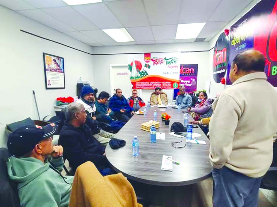 নিজস্ব সংবাদদাতা : মহান বিজয় দিবস উপলক্ষে চট্টগ্রাম বিশ্ববিদ্যালয় এলামনাই অ্যাসোসিয়েশন অব কানাডা এর উদ্যোগে এক আলোচনা সভা ও বীর মুক্তিযোদ্ধা সম্মাননা প্রদান অনুষ্ঠান অনুষ্ঠিত হয়েছে। গত ১৩ ডিসেম্বর, শনিবার, টরন্টোর ৩০৯৮ ড্যানফোর্থ অ্যাভিনিউয়ে অবস্থিত সংগঠনের নিজস্ব কার্যালয়ে এ অনুষ্ঠান আয়োজন করা হয়।