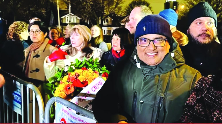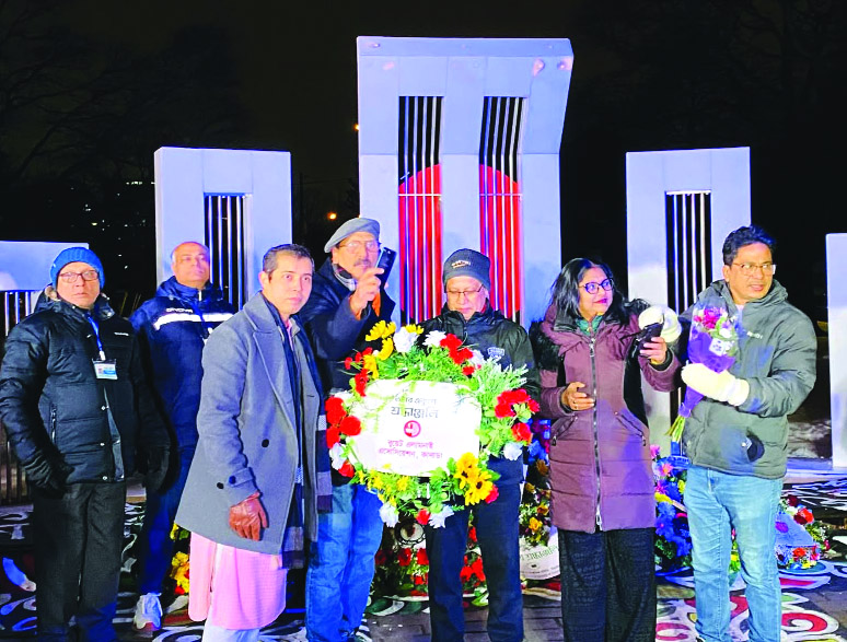 বাংলা কাগজ ডেস্ক : গত ২১শে ফেব্রুয়ারী রাত ১২টা ১ মিনিটে টরন্টোর মেইন স্ট্রীট ও ভিক্টোরিয়া পার্ক সাবওয়ে’র মাঝামাঝি জায়গায় অবস্থিত ডেন্টোনিয়া পার্কের স্থায়ী শহীদ মিনারে টরন্টোর প্রবাসী বাংলাদেশীরা ব্যক্তিগতভাবে এবং বিভিন্ন সংগঠনের মাধ্যমে ১৯৫২ সালের ভাষা আন্দোলনের শহীদদের প্রতি ফুল দিয়ে শ্রদ্ধা আর ভালোবাসা জানান।