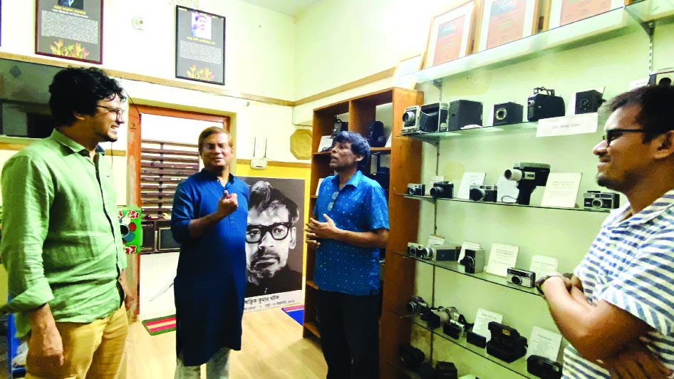 আহসান কবীর লিটন: ‘চলচ্চিত্র ঘরে’ প্রদর্শিত হয়েছে ১৬৫০ এর দশকে উদ্ভাবিত স্লাইড প্রোজেক্টর ‘ম্যাজিক ল্যান্টার্ন’ এটি জার্মান বিজ্ঞানী আথানাসিয়াস কির্শার আবিস্কার করেন বলে মনে করা হয়। ‘ম্যাজিক ল্যান্টার্ন’ ছিল কাচের স্লাইডে আঁকা ছবি আলোর সাহায্যে দেয়ালে প্রক্ষেপণের প্রথম প্রযুক্তি। প্রদর্শিত হয়েছে ২০শ শতকের সবচেয়ে বিখ্যাত প্রেস ক্যামেরা ‘গ্রাফলেক্স স্পিড গ্রাফিক’। এটি ১৯১২ সালে আমেরিকার রচেস্টার, নিউইয়োর্ক ‘গ্রাফলেক্স ক্যামেরা কোম্পানি’ তাদের গ্রাফিক সিরিজ চালু করে যা বড় ফরম্যাট প্রেস ক্যামেরার যুগ শুরু করে। রয়েছে ১৯২৯-১৯৩০ সালের দিকে আবিস্কৃত বিভিন্ন বক্স ক্যামেরা যেগুলো সাধারণ মানুষের জন্য ফটোগ্রাফি সহজ করে দেয়। ১৯৩০ সালে আবিস্কৃত ‘সিনে কোডাক ৮ মডেল ২৫ হোম মুভি ক্যামেরা’ এছাড়াও রয়েছে বিভিন্ন সময়ের এইট এমএম ও সুপার এইট এমএম মুভি ক্যামেরা এবং প্রজেক্টর। রয়েছে বিভিন্ন প্রজম্মের ক্যামেরা, ইন্সট্যান্ট ফিল্ম ক্যামেরাসহ বিভিন্ন সময় ও মডেলের ১৬ মিলিমিটার মুভি ক্যামেরা ও প্রজেক্টর।